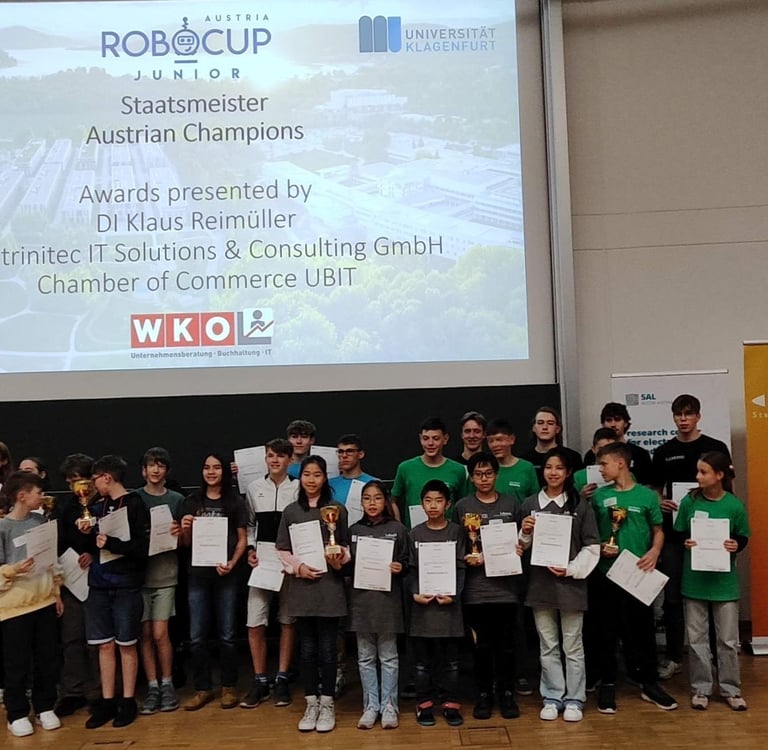 Bei der kürzlich in Klagenfurt, Kärnten, stattgefundenen RoboCupJunior Austrian Open 2025 haben unsere Code4u-Schülerteams hervorragende Ergebnisse erzielt:
